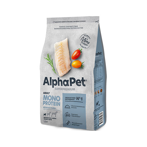 AlphaPet Superpremium MONOPROTEIN / Сухой полнорационный корм из белой рыбы для взрослых собак мелких пород