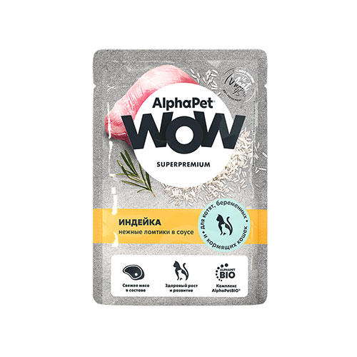 Влажный полнорационный корм для котят, беременных и кормящих кошек — нежные ломтики индейки в соусе AlphaPet WOW Superpremium. Рацион создан на основе большого количества свежего мяса и натуральных ингредиентов, обеспечивая питомца необходимыми питательными веществами для здорового роста и развития.