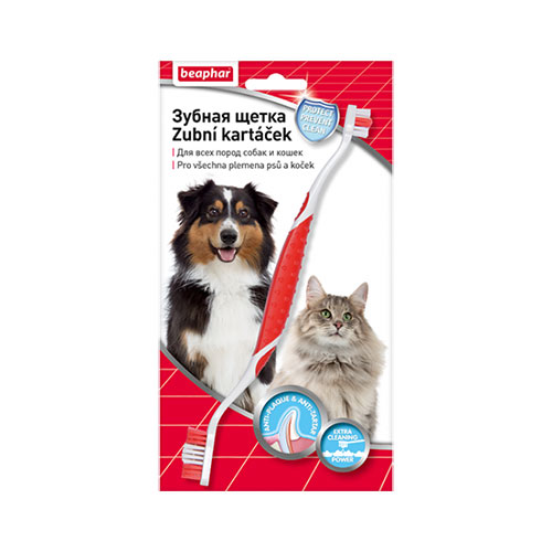 Представляет собой двустороннюю щетку для очищения зубов собак и кошек всех размеров и пород.