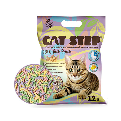 Растительные волокна, которые являются основой наполнителя CAT STEP Tofu Tutti Frutti, легко растворяются в воде, поэтому его можно смывать в канализацию без опасений.