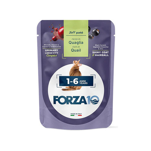 Мясо и мясные дериваты (перепелка 14%), дрожжи, масла и жиры (лососевое масло 0,1%), фрукты (клюква 0,01%, черная смородина 0,01%), продукты растительного происхождения (глицерин растительного происхождения 0,01%), минеральные вещества.