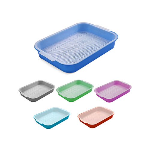 Туалет с прозрачной сеткой - универсальный аксессуар для вашего четвероногого питомца. Такая модель идеально подходит для кошек, не любящих наполнитель. Съемная прозрачная сетка максимально упрощает уборку, а компактные габариты изделия позволят разместить его где угодно с комфортом для животного. Туалет изготовлен из высококачественного пластика и легко чистится под струет воды при помощи моющих бытовых средств. Размеры изделия: 38 х 28 х 5,5 см. Цвета лотков: темно-оливковый, голубой, коралловый.