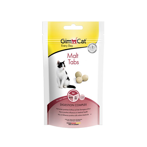 Витаминное лакомство Gimcat Malt Tabs – лакомство с солодовым экстрактом, корой вяза и пищевыми волокнами для поддержания здоровья кишечника у взрослых кошек.