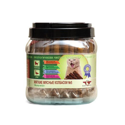 GreenQZin "Подвижность №5" - это мягкие мясные колбаски для стерилизованных кошек с телятиной и уткой.