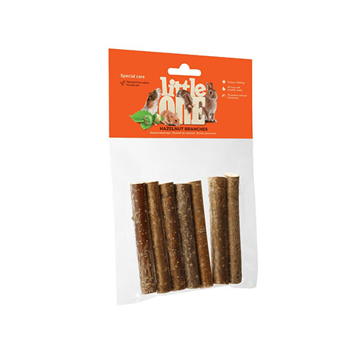 Зубы у грызунов и кроликов растут всю жизнь. По этой причине животные должны постоянно их стачивать. Невозможность стачивать зубы приводит к различным неблагоприятным последствиям: заболеваниям зубов, ранам десен и др. Ветви орешника Little One являются естественным средством для стачивания зубов у грызунов и кроликов. Изгрызание ветвей лещины или орешника гарантирует ежедневный уход за зубами животных, при этом обеспечивая занятия питомцам на длительное время.