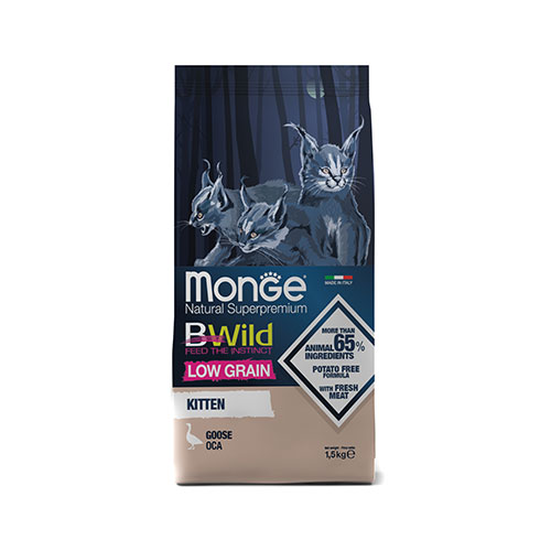 Monge (Монж) Cat BWild LOW GRAIN Kitten (холистик) полнорационный низкозерновой корм из мяса гуся для котят и беременных кошек 1,5 кг.