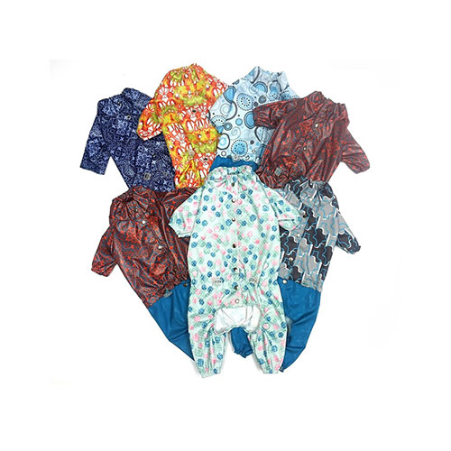 Застегивается на спине с помощью молнии. За счет регулировки объёма комбинезона с помощью шнура-утяжки, хозяин без проблем сможет подобрать нужный размер своему питомцу. Низ штанин сборен на резинку от попадания воды и грязи внутрь комбинезона.