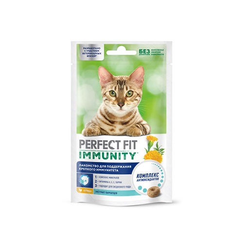 В основе рецептуры функционального лакомства PERFECT FIT™ IMMUNITY лежит особая формула, разработанная совместно с ветеринарными врачами Центра изучения питания домашних животных ООО «Марс». Лакомство производится без добавления искусственных красителей и консервантов.