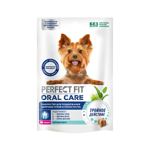 Функциональное лакомство PERFECT FIT™ ORAL CARE подходит для щенков от 4 месяцев и стерилизованных собак. В основе рецептуры функционального лакомства PERFECT FIT™ ORAL CARE лежит особая формула, разработанная совместно с ветеринарными врачами Центра изучения питания домашних животных ООО «Марс».