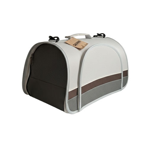 Переноска оснащена удобными ручками и регулируемым плечевым ремнём, что делает её удобной для владельца. Лёгкая конструкция и стильный дизайн в бежево-коричнево-серой гамме гармонично сочетаются с любым образом