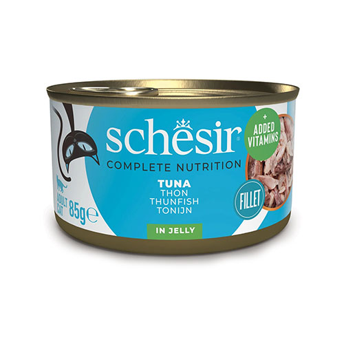 Schesir Tuna in Jelly — это полнорационный влажный корм для взрослых кошек, приготовленный из натуральных филе тунца, сваренных на пару и вручную обработанных, с добавлением мягкого растительного желе. Корм содержит всего несколько простых и натуральных ингредиентов, богат белком (13%) и отличается низким содержанием жиров (1.5%), что делает его питательным и легко усваиваемым. Высокая влажность (84%) способствует дополнительной гидратации, а насыщенный вкус и натуральная текстура удовлетворяют даже самых привередливых кошек.