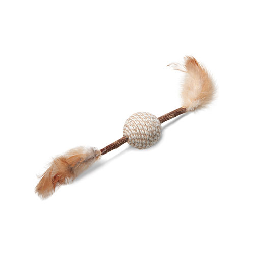 Игрушка для кошек Triol Natural "Мячик с перьями" сделана из натурального растения мататаби, которое привлекает внимание питомца своим ароматом, бережно заботится о зубах, а также помогает справиться со стрессом и агрессией. Игрушка подойдет для совместной игры с хозяином в дразнилки и догонялки. При этом яркие перья привлекают кошек и для самостоятельной игры. Регулярные игры развивают в кошках скорость реакции, физическую форму и инстинкт хищника. В составе игрушки мататаби, сизаль, перо и металлические элементы. Размер игрушки: 22 см. Диаметр мяча: 4 см. Triol Natural – линия товаров для питомцев из натуральных материалов. Каждая игрушка сделана с учетом потребностей наших питомцев с любовью и вдохновлена природой.