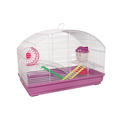 Клетка прямоугольной формы с округлой крышей - удобный и функциональный дом для любого грызуна: он занимает совсем немного места и отлично подходит для мелких домашних животных вроде крыс, мышей и хомяков. В комплектацию изделия также входят: пластиковая миска, уютный домик, беговое колесо и две пластиковые лесенки. Кроме того, клетка оборудована удобной ручкой на крыше, облегчающей процесс переноски изделия, и специальным пластиковым наружным поддоном, облегчающим процесс уборки. Цвет: голубой, сиреневый, морской волны. Размер изделия: 580*320*410мм.