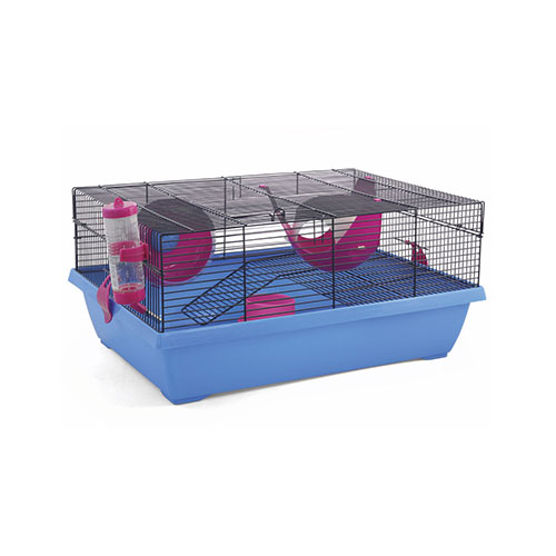 Клетка прямоугольной формы с горизонтальными прутьями - удобный и функциональный дом для любого грызуна: он занимает совсем немного места и отлично подходит для мелких домашних животных вроде крыс, мышей и хомяков. В комплектацию изделия также входят: пластиковая миска, поилка, уютный домик-гнездо и беговое колесо. Цвет: черный/синий. Размер изделия: 51х36,5х23,5 см