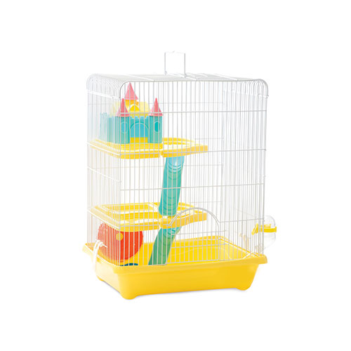 Трехэтажная вертикальная клетка прямоугольной формы с прочным металлическим каркасом. Такая клетка - целый развлекательный комплекс для грызуна, который занимает немного места и отлично подходит для мелких домашних животных вроде крыс, мышей и хомяков. В комплектацию изделия также входят: пластиковая миска, поилка с носиком, уютный домик в виде замка, горка и беговое колесо. Клетка оборудована специальным пластиковым наружным поддоном, облегчающим процесс уборки, а удобная ручка сверху максимально упрощает транспортировку изделия. Цвет: желтый, малиновый, зеленый, синий. Размер изделия: 350х260х460мм.