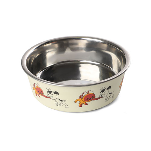 Стильная круглая миска из нержавеющей стали для кошек и собак. Она идеально подходит как для воды, так и для корма разной консистенции. Миска комфортна для питомца и легко моется под струей проточной воды с использованием моющих бытовых средств. Во избежание повреждения покрытия изделие не рекомендуется мыть в посудомоечной машине. Прорезиненное основание обеспечивает максимальную устойчивость, препятствуя скольжению изделия во время использования, а оригинальный принт сделает такую миску украшением любого интерьера. Цвет изделия: бежевый. Объем: 400мл. Размер изделия: 14х14х4,8 см (диаметр дна – 11,5 см).
