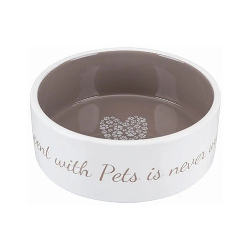 Керамическая миска в приятной контрастной расцветке и милом дизайне. Классическая круглая форма. Миску можно использовать для сухого или влажного корма, а также для воды.