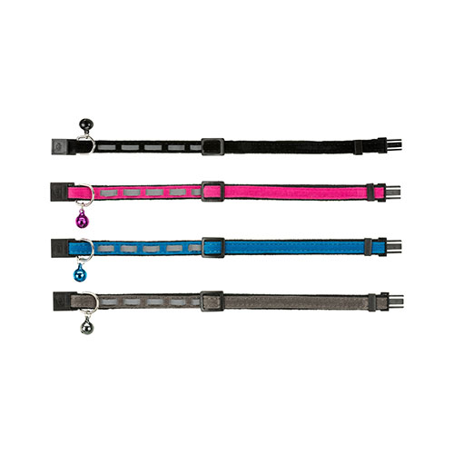 Ошейник имеет малый вес, что делает его практически невесомым для питомца. Светоотражающие элементы, которым оснащен ошейник, делает питомца более заметным в темное время суток, что повышает его безопасность. Маленький металлический колокольчик поможет услышать движения вашего питомца. Модель выпускается в разных цветах.