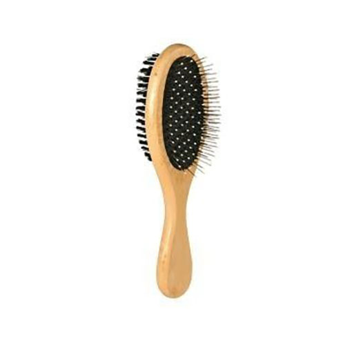 Большая двусторонняя щетка для регулярного ухода за шерстью собаки. Выполнена из комбинации материалов - полированное дерево, искусственная нейлоновая щетина и стальные зубчики. Зубчики с одной стороны хорошо расчесывают подшерсток и, благодаря закругленным кончикам, активно массируют кожные покровы. С другой стороны нейлоновая щетина, которая расчесывает и выравнивает верхний слой.
