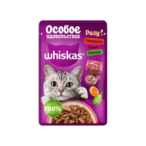 Говядина, язык и овощи — сразу всё, о чём мечтала ваша кошка, в новой коллекции сбалансированных блюд Whiskas Особое удовольствие для замурррчательной жизни. В каждом из паучей содержится три основных ингредиента: разные виды мяса или морепродуктов смешиваются в нежнейшем соусе или желе, чтобы вы воплощали мечты своих любимцев. Подходит для стерилизованных котов и кошек.