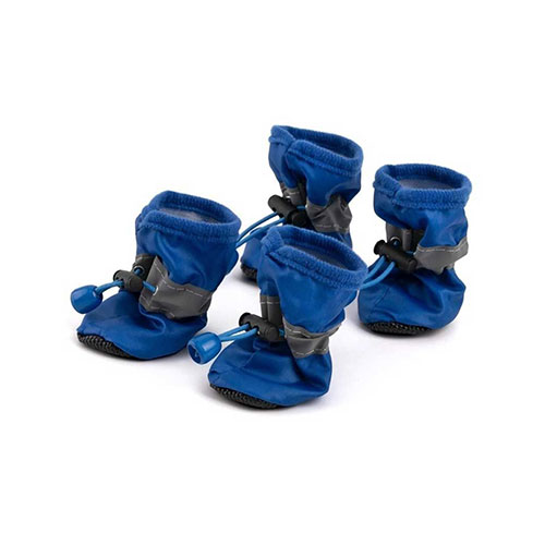 Универсальная обувь для собак мелких и средних пород. Крепко держится на лапе, если продеть резинку от утяжки через лапу, сделав дополнительное кольцо фиксации. Ботинки изготовлены из синтетического материала с водоотталкивающей пропиткой. Подкладка тонкая, демисезонная (без утепления), а подошва из нескользящего ЭВА. Подкладки на внутренней стороне подошвы нет. На ботинках есть светоотражающие полоски